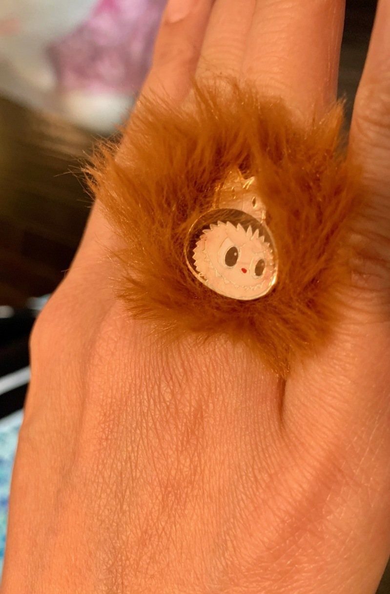 她还有Labubu的毛绒包包和戒指,她说,这些都不贵,但是很可爱。 现在网上很多假的Labubu,要看Labubu有几颗牙齿,九颗牙齿的才是真的,还要其缝线直不直等,感觉像鉴别名牌包包一样。现在身边朋友最想拿到的生日礼物大概就是Labubu,所以她囤了几个Labubu,等朋友生日送给她们。她在网上看到南加PopMart店开张时大人们冲进店里抢购,感觉玩偶不只是小孩子的专利,大人也会变得像小孩子一样,为了心爱的玩具冲冲冲。