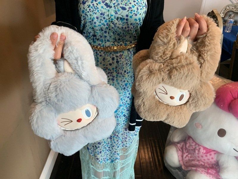 杨安立的Labubu毛绒包。(记者张宏/摄影)