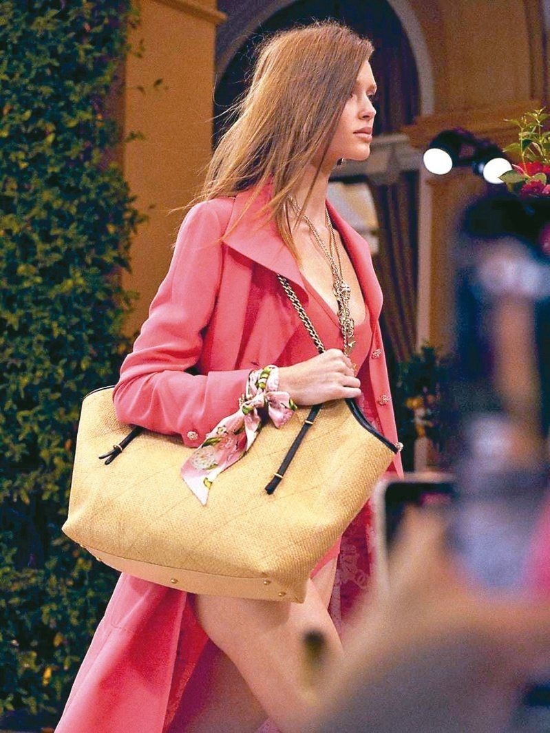 织洋装与草编托特包充满度假气息。图/香奈儿提供