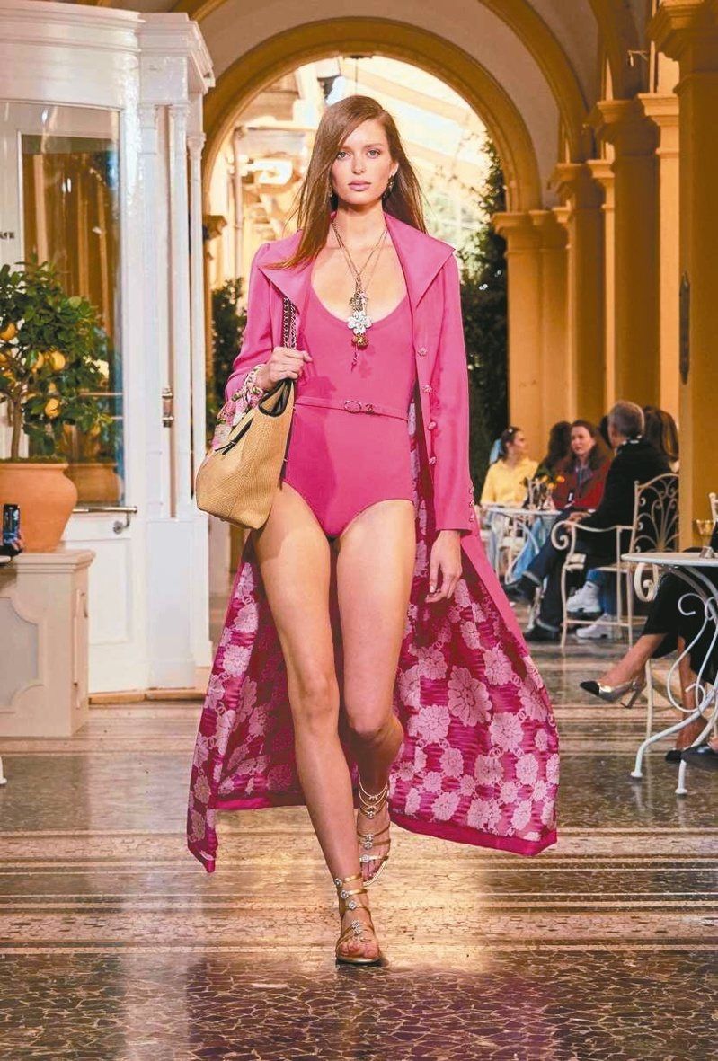 搭在泳装外的宽袍内里装饰本季重要的花卉图案。图/香奈儿提供