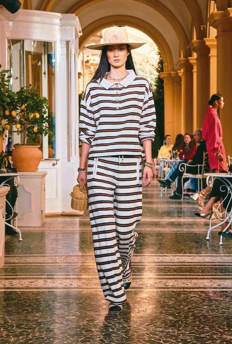 草编配件和蓝白条纹都是经典度假系列符码。图/香奈儿提供