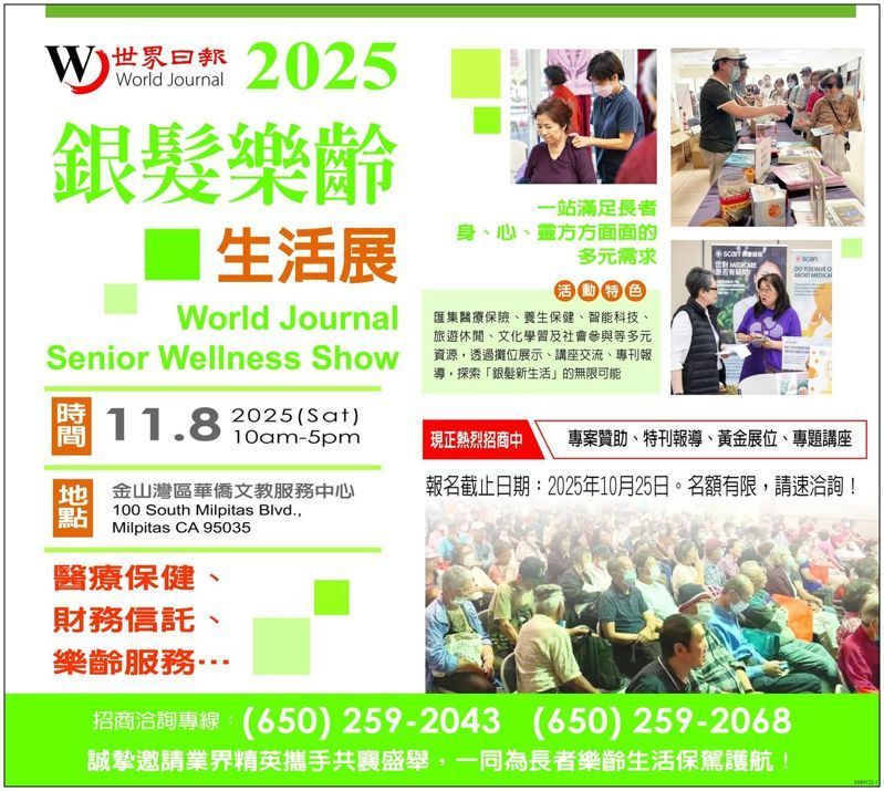 为回应这股趋势,《世界日报》特别策划举办 「2025银发乐龄生活展」(World Journal Senior Wellness Show),将于