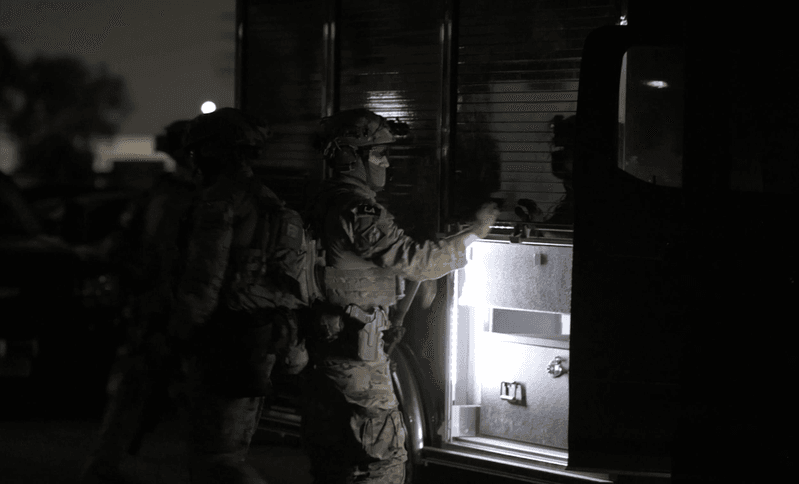 FBI表示,这次行动出动多支战术小组,包括来自洛杉矶、托伦斯、拉斯维加斯、凤凰城及圣地牙哥的特警(SWAT)与人质救援队(HRT),在圣彼渚多个地点同步执行九项联邦与八项州级搜索令。