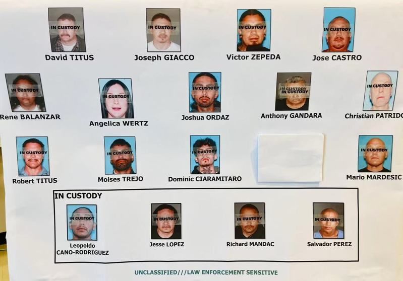 检方指出,这起联邦案件共起诉14名被告,罪名包括违反「组织犯罪影响与贪腐法」(RICO)及「共谋持有与分销毒品」等,另有一人被控「重罪犯持有枪械与弹药」。若罪名成立,多数被告面临最高终身监禁。