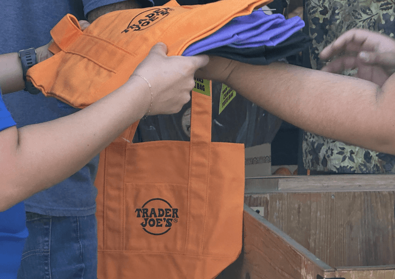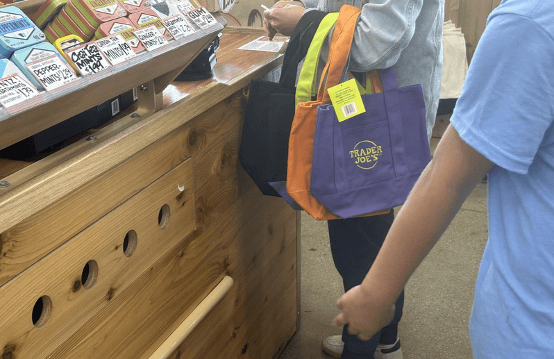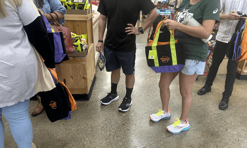 这批迷你帆布托特包每个售价仅2.99美元,价格相当亲民诱人,几乎成为人手一组、四款全包的抢手商品。记者8日下午前往Trader Joe's的蒙罗维亚门市,正巧遇上新一批托特包上架,现场销售速度极快。进店逛一圈,就发现几乎每位顾客手上都拿着四款托特包,不分性别、年龄、族裔。若不是大家都拿着包排队准备结帐,真会让人误以为这些包包是免费赠送。