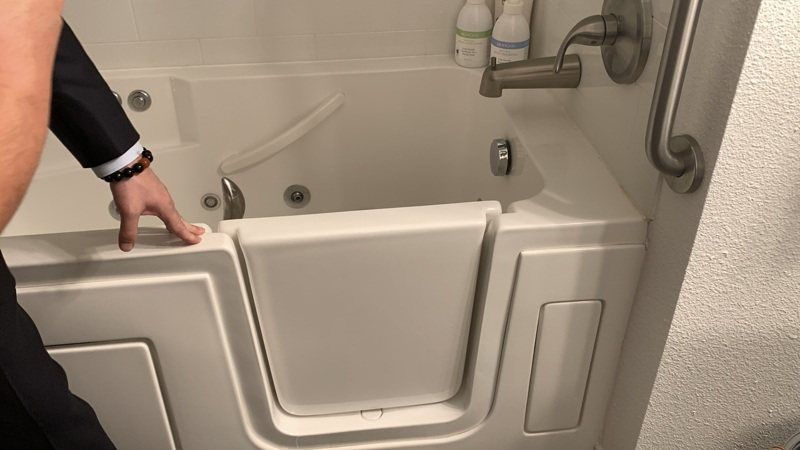 为腿脚不便的长者准备的出入式浴缸。(记者张宏/摄影)