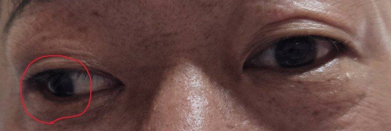 黄姓男子因脑部中风造成右眼无法转动。(员荣医院提供)