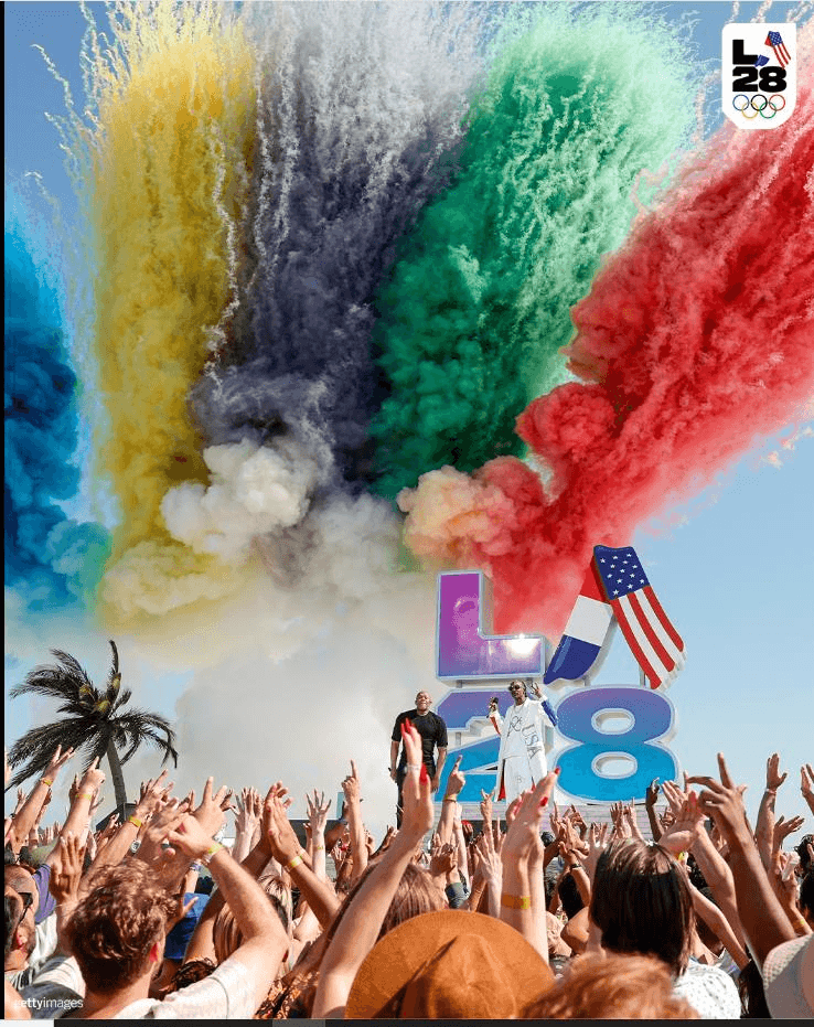 洛杉矶将于2028年第三度主办奥运,市长贝斯日前宣布「全民共享奥运」计画,强调透过奥运推动城市建设与社区永续发展。(示意图,取自LA28官网脸书)