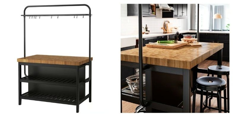 据IKEA官网售价,「Vadholma厨桌」售价799美元,虽非低价,但具备多重功能。此款厨桌上方设有吊架,可悬挂锅具并释放橱柜空间,下方配有层架以便收纳更多物品。橡木贴皮台面散发质朴的乡村氛围,与农舍风格装潢相互呼应。IKEA强调,这款产品在设计上兼顾美观与实用性,无论大空间或小厨房都能灵活配置。