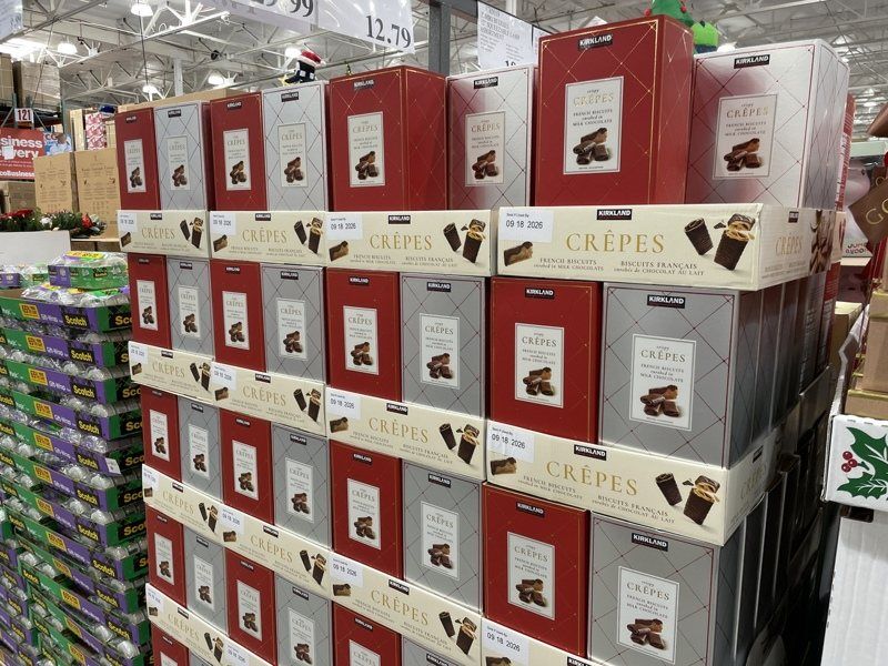 邻近年底节假日,好市多上架多种巧克力和饼干礼盒。其中有一款好市多自营品牌柯克兰(Kirkland)的法式巧克力薄脆也悄然上架。好市多每年都会在年底上货这款薄脆,深受华洋民众喜爱。有华人将其比喻为「好市多最危险单品」,因为一吃就停不下来。