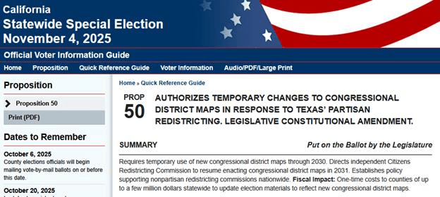 支持者认为第50号提案是对德州党派选区重画的一次性回应;批评者则称其为沙加缅度的政治权力攫取。无论你赞成或反对,以下是11月4日特别选举的投票方式。