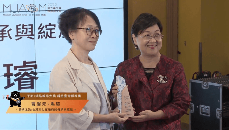 纽约社记者曹馨元与马璇的作品「岛屿之光:台湾文化在纽约的传承与绽放」则是获得平面/网路媒体类的「链结台湾报导奖」,透过记录台湾同志社群在纽约的发展历程与文化实践外,也见证台湾原创音乐剧「劝世三姐妹」首登外百老汇的重大里程碑。以下为完整得奖名单: