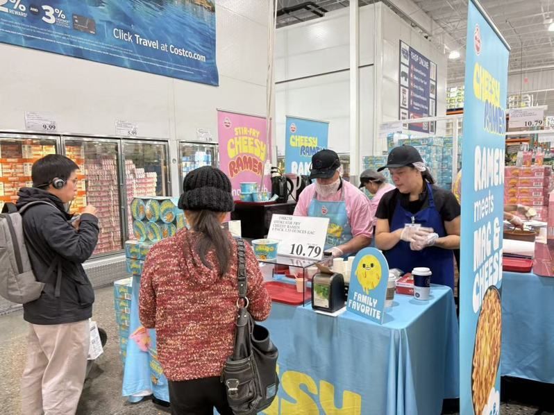 南湾costco上架韩国芝士杯面,吸引不少消费者试吃。(记者龚玥/摄影)