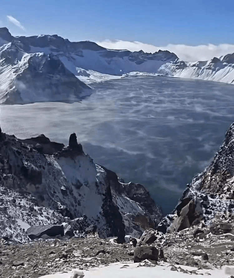 长白山天池被拍到池水疑出现「沸腾开锅」现象。(取材自新京报/受访者供图)