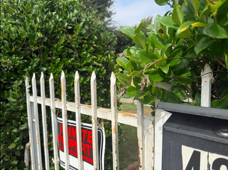 枪案发生后,人去楼空。记者透过前门栅栏,看到院子里仍摆放很多生活用品,半开的房门张贴中文告示:「请尊重自己,任何地方不要乱扔垃圾,不要乱扔菸头,不要乱吐痰,不要随地尿尿,以免被邻居摄像头举报。」房屋后墙爬满紫色小花的藤蔓,透过窗户,隐约可见室内的上下铺床位。