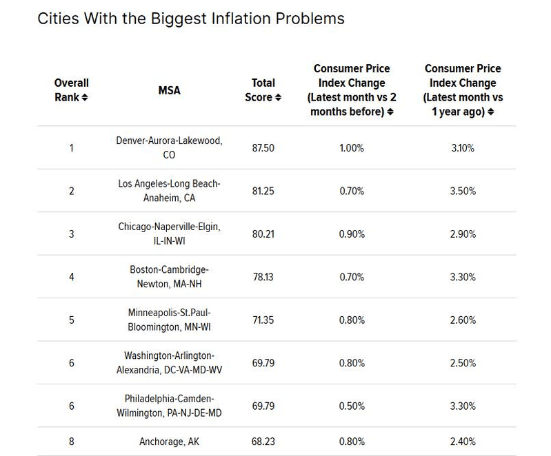 为确定通膨对不同城市居民的影响,WalletHub比较23个主要都会区(MSA)的两项关键指标,即美国劳工统计局(BLS)9月的消费者物价指数(CPI),并其与两个月前和一年前进行比较,了解通膨在短期和长期内变化。