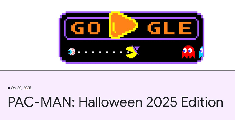 谷歌30日启用PAC-MAN:Halloween 2025 Edition首页。(取自谷歌官网)