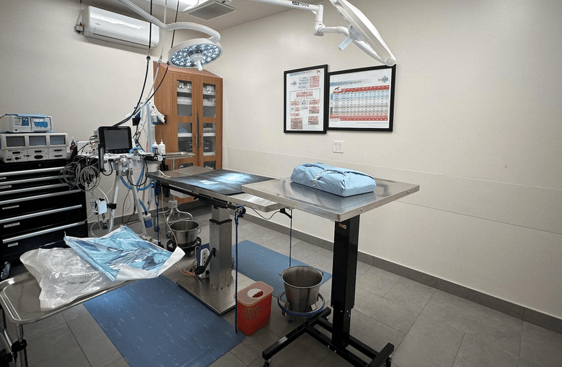 安那罕Veterinary Emergency Group兽医急诊室的动物手术台。(记者谢雨珊/摄影)