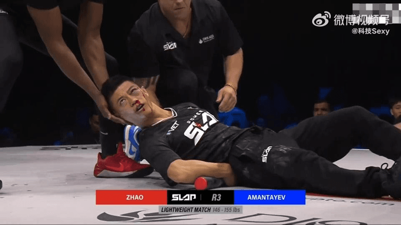 香港01报导,曾多次在武术交流赛中夺冠的赵鸿刚,在这次比赛中对阵哈萨克选手阿曼塔耶夫(Muhammad Amantaev),赵鸿刚作为后手方须先承受对手攻击。
