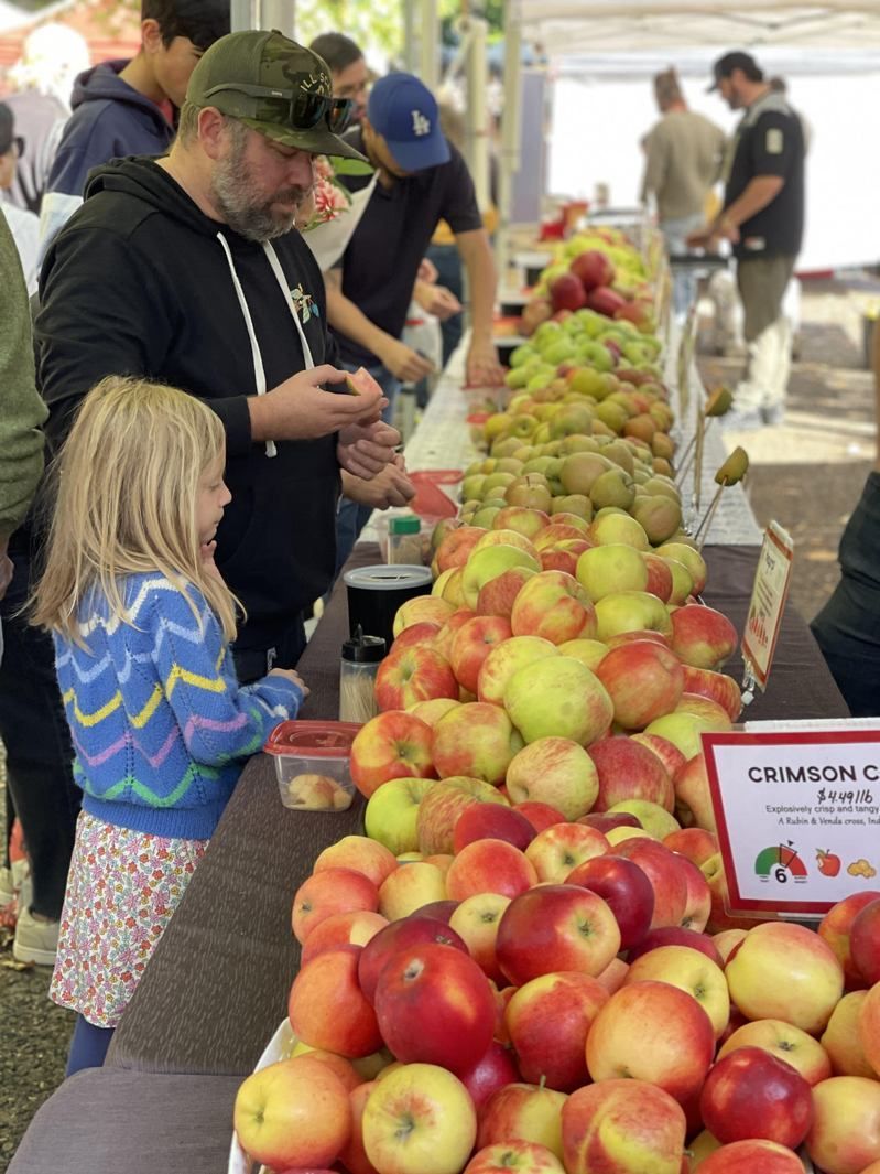 农夫市场里的苹果试吃活动。(作者提供)