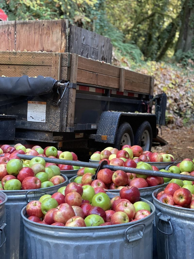运到磨坊的苹果将现榨成苹果西打。(作者提供)