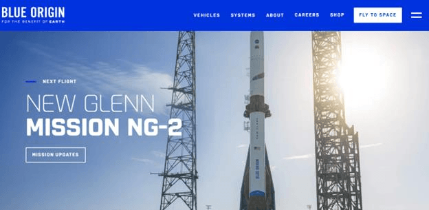 图为蓝色起源公司(Blue Origin)网站首页发布的发射预告。 (blueorigin.com)