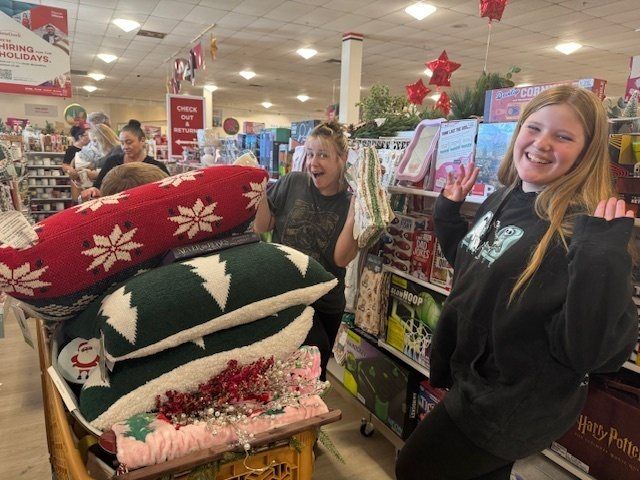 周末带着12岁的女儿Aryn(右)和两岁的儿子Ben在Home Good采购的格兰杜拉居民Katharyn Blair(右二)的采购车上装满圣诞节沙发抱枕、圣诞树小饰品和各种礼品袋。(记者杨青/摄影)万圣节刚过一周,圣盖博谷各地已充满年底三大节日的气息,华洋民众过节准备似乎愈来愈早。距离圣诞节还有一个多月,南加部分卖场已出现许多采买圣诞用品的民众,且结帐队伍较长。