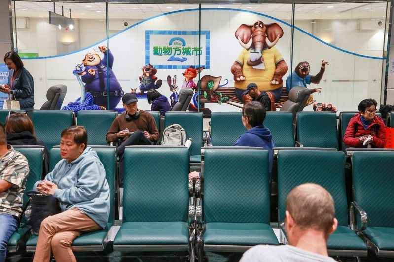 为营造欢乐的气氛,华航特别在候机室内布置动物方程式2角色玻璃贴、拍贴机及扭蛋机。(记者黄仲明/摄影)
