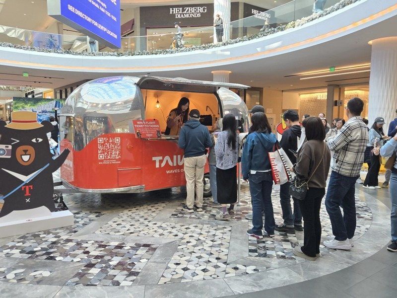 台湾观光快闪活动吸引民众感受台湾魅力,在改装的台湾宣传露营车前排起人龙。(记者孙爱薇/摄影)