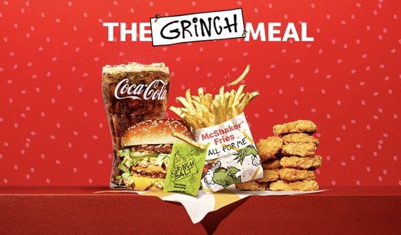 今年圣诞假期快餐龙头「麦当劳」再度出招,携手经典节庆故事「圣诞怪杰」(How the Grinch Stole Christmas!)中的反派角色格林奇(The Grinch),推出限时套餐「格林奇套餐」,自12月2日起于美国指定门市开卖,期间限定、售完为止。