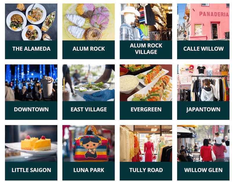 由市府经济发展与文化事务办公室打造的购物指南网站已收录逾300家商家,涵盖独立零售店、咖啡厅、餐厅、书店、甜点店、工作坊、艺术空间与文化体验活动。商家分布于13个特色商业区,包括市中心、日本城、Willow Glen、小西贡、The Alameda、Alum Rock Village、Luna Park等,让消费者能依照兴趣与地区探索不同风貌的在地街区。