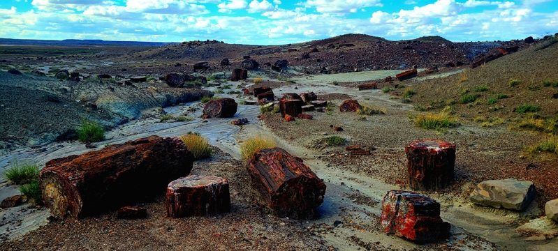 因此,当听见亚利桑纳州东北部有一座「森林变成石头」的国家公园时,我几乎毫不犹豫地将它列入此行必访清单。这座名为「石化森林」(Petrified Forest)的地方,让两亿年前的巨木在荒原静卧成岩,像是大地的心跳,被时间层层封存。
