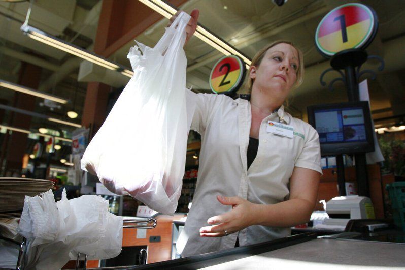 从明年元旦起,加州超市、酒类商店和药房将逐步淘汰塑胶购物袋。(美联社)