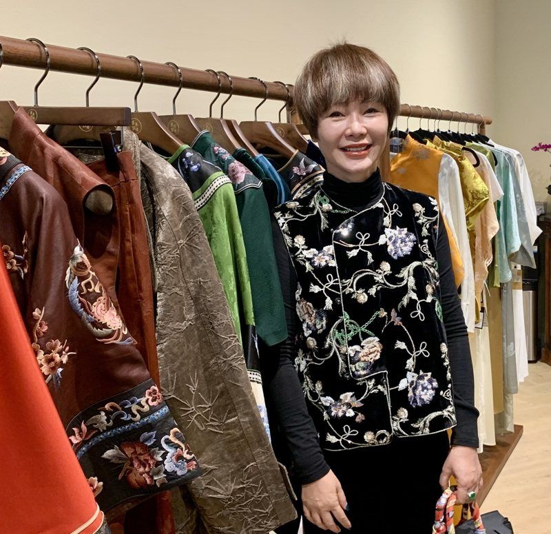 穿新中式服装不仅不会撞衫,且其华丽丝绣手工更凸显华丽。(记者张宏/摄影)