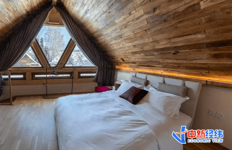「我们的主要客群是90后、00后的年轻群体以及追求品质的亲子家庭,来自南方省份的客人占比非常高。」张海表示,「这些游客不再满足于基础住宿,更愿意为品质和审美支付溢价,像是落地窗雪景和全屋地暖这样的房间,往往更受他们喜爱。高颜值、高‘出片率’,更便于他们在社交媒体上分享。」