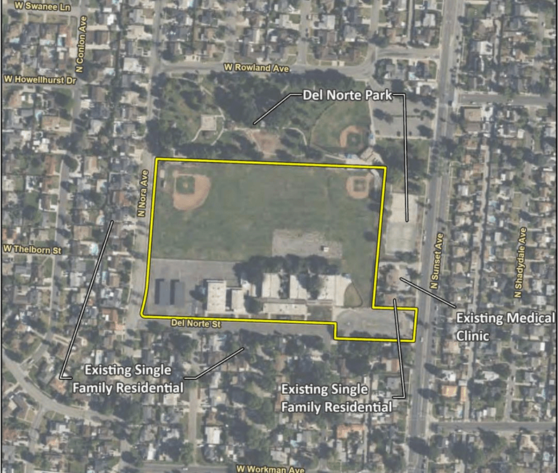 建案位于1501 Del Norte大街。黄色框为其位置。(取材自西科汶那市府)