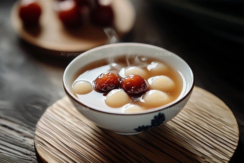 本月21日进入冬至节气,命理师杨登嵙分享华人民俗观念,也提供汤圆占卜法,让民众团聚吃汤圆时可进行的余兴小游戏。(AI生成)