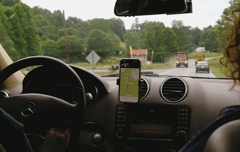 如果手机用于导航,必须固定在仪表板、挡风玻璃或中控台上。(示意图取自unsplash)