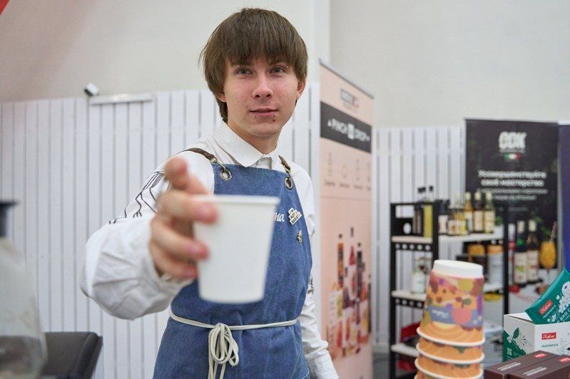 俄罗斯海参威10月9日举行远东茶和咖啡锦标赛,一名咖啡师请游客品尝咖啡。(新华社)