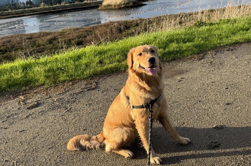 赵先生的爱犬性格温顺、从未见过野生动物。(受访者提供)他指出,最前方的两只郊狼明显露出敌意,呲牙并试图扑向金毛犬,而他的爱犬性格温顺、从未见过野生动物,还一度误以为对方是要来「玩耍」,甚至摇着尾巴想靠近,情况一度非常危险。