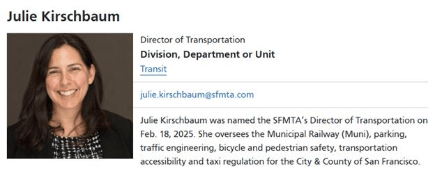 旧金山市长罗伟在2月任命寇淑宝担任交通局长,她沉稳的个性与作风,赢得很多市民赞许。(取自sfmta.com)