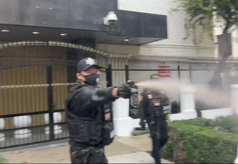 集会负责人界立建是中国民主党国际联盟主席,他表示,该组织部分成员1月4日午后在洛杉矶中领馆前集会,遭一名保全两次使用辣椒水攻击。至少八人被攻击,他本人眼睛及脸部受伤,出现呼吸不畅、心慌等症状。报警后,该保全被洛县警局逮捕。