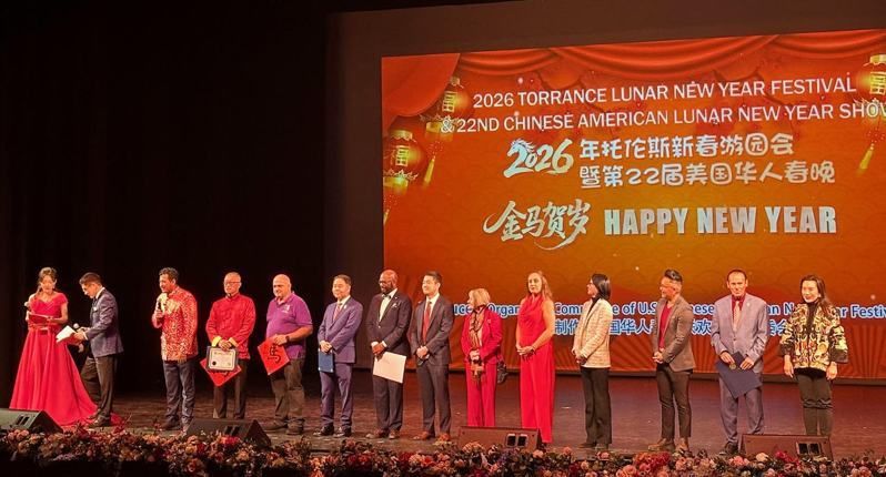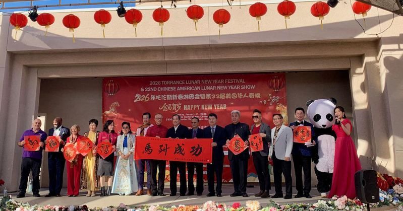 为迎接春节,美国加州南湾华人协会与美中文化协会,日前联合在托伦斯文化艺术中心主办「2026年托伦斯新春游园会暨第22届美国华人春节联欢晚会」。活动吸引数千多族裔民众参与,数十摊位、互动游戏和精采节目,让大家提前度过欢乐的马年春节。