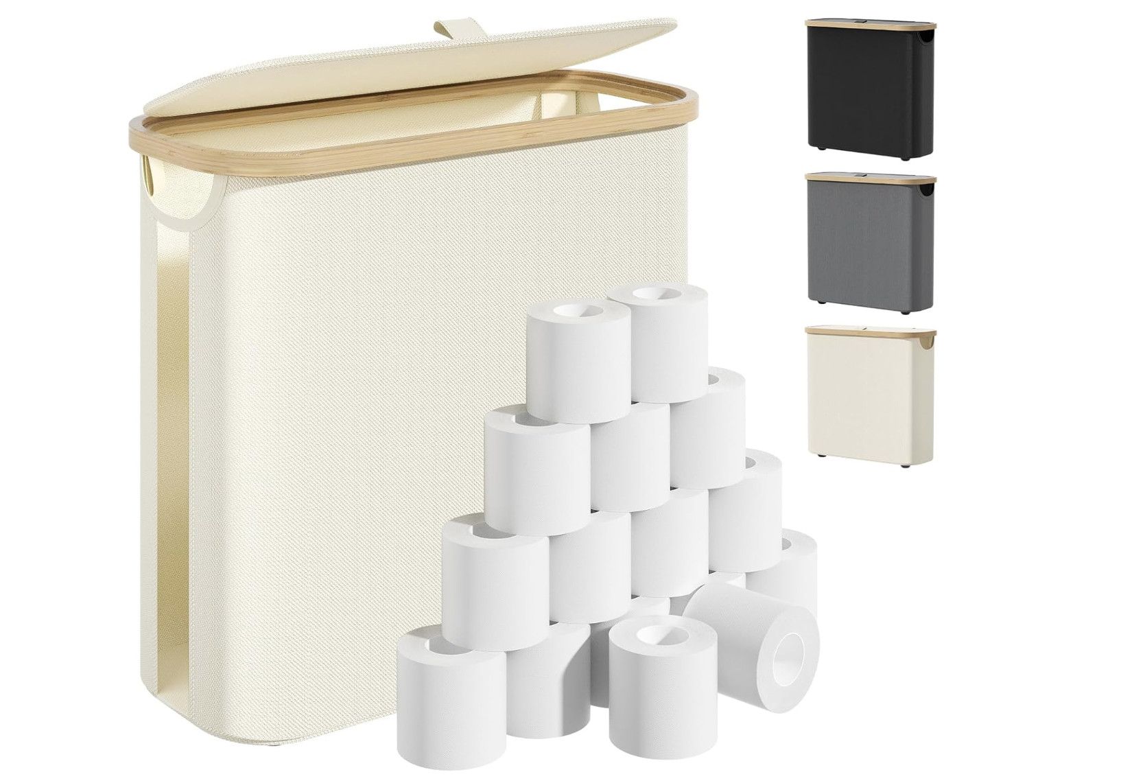 原价$29.99,现输入折扣码【MG3XYF5Q】后仅售$9.99!这款竹盖卫生纸收纳篮可容纳12卷普通纸或9卷大卷,结合天然竹盖+可折叠设计,既美观又实用,是提升浴室整洁感的好帮手: