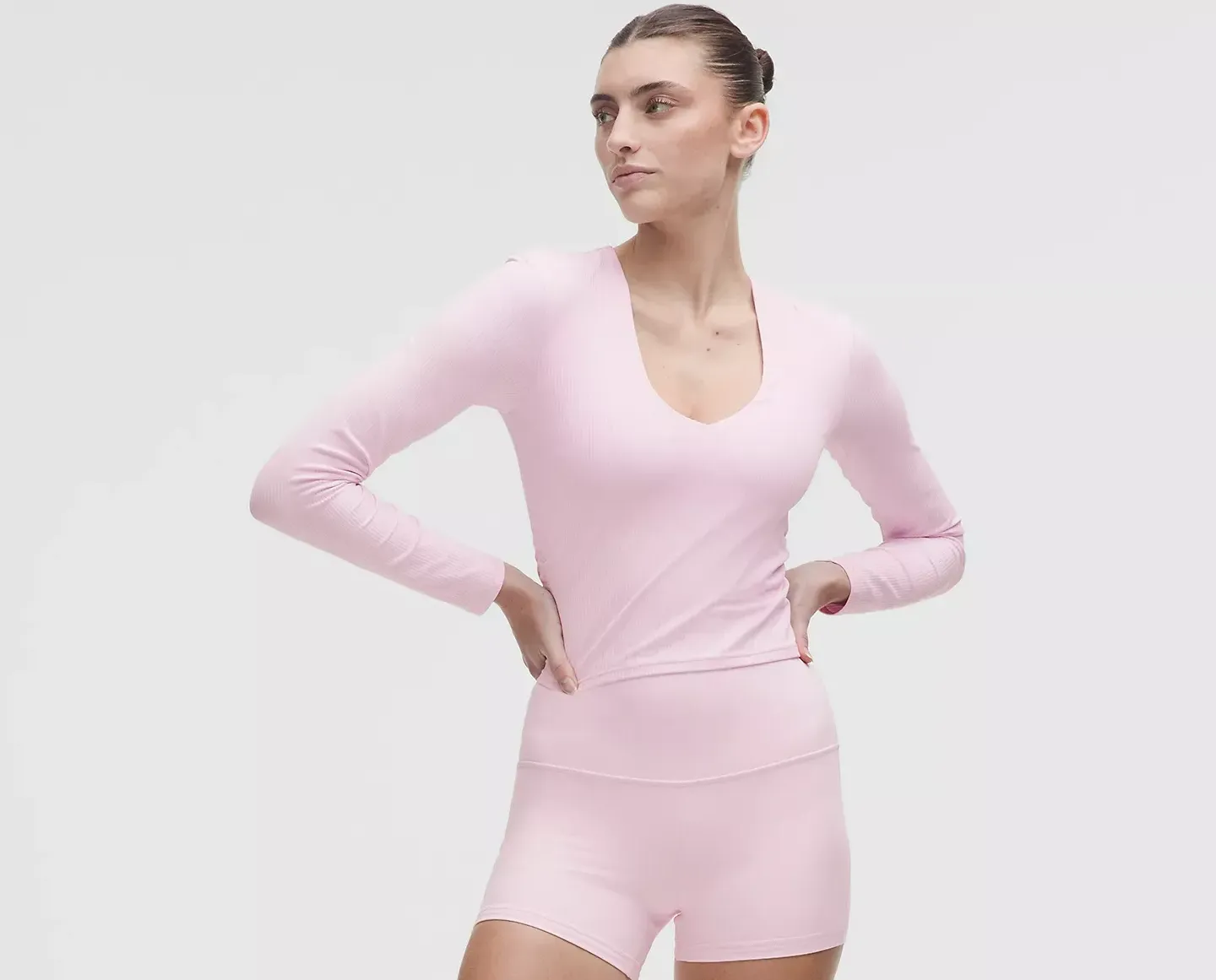绝美粉色lululemon 高腰瑜伽短裤【折后$29 包邮】