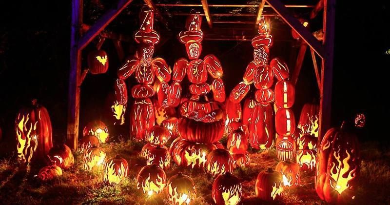 傑克南瓜燈展的門楣造型。 (取材自燈展臉書)傑克南瓜燈展的網站是https://pumpkinblaze.org/,主辦方提醒,游客現場無法購票,必須在上述網站購票。為了防止假票,主辦方也不鼓勵在其他網站或從第三方購票。
