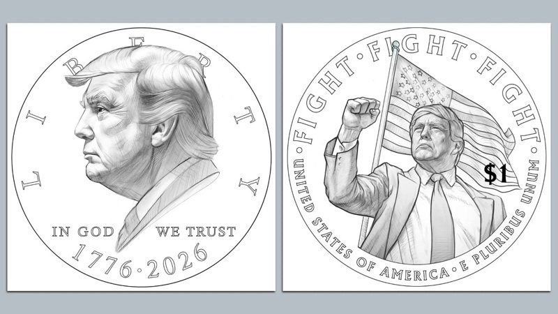 這款紀念幣的初步設計是由財政部司庫畢治(Brandon Beach)的辦公室主導及監督,一面是川普的側面肖像,另一面是川普2024年賓州競選時遭槍擊後,高舉緊握拳頭的一幕,背後有國旗,並配有「FIGHT, FIGHT, FIGHT」(戰鬥,戰鬥,戰鬥)字樣。