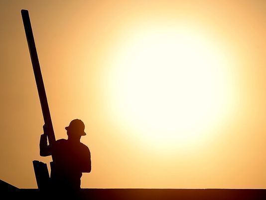 加州議會推動立法,為高溫導致的勞工傷病提供保障的AB 1336法案,正等待州長紐森簽署。圖為在高溫下正作的勞工。(美聯社)