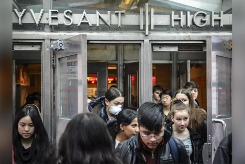 特殊高中的錄取按照特高考最高分學生依次往下,但凡最高分學生的最心儀學校尚有名額,就會向學生發出該校錄取通知。圖為向來分數最高的史岱文森中學。(圖片來自美聯社)