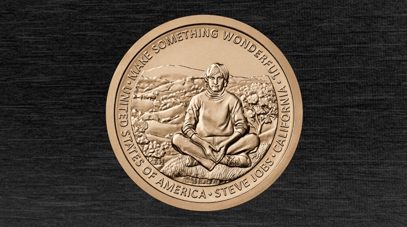 鑄幣局說,硬幣邊緣刻有包含「美國」、「加州」、「史蒂夫·喬布斯」以及「創造奇妙事物」的詞彙。